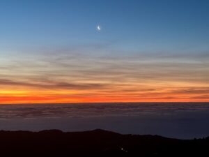 Another very popular trail and even more popular for sunrise viewing is the Pico do Areeiro to Pico Ruivo (PR1). Fortunately, the night before I had read that part of it was closed so was prepared to find an alternative. We said we would head up for the sunrise and at least do what we could of it. Definitely a good spot for sunrise but consider these tips as it is very crowded! Go early and enjoy the night sky – it was so clear and beautiful when we arrived, even more amazing than the sunrise.
